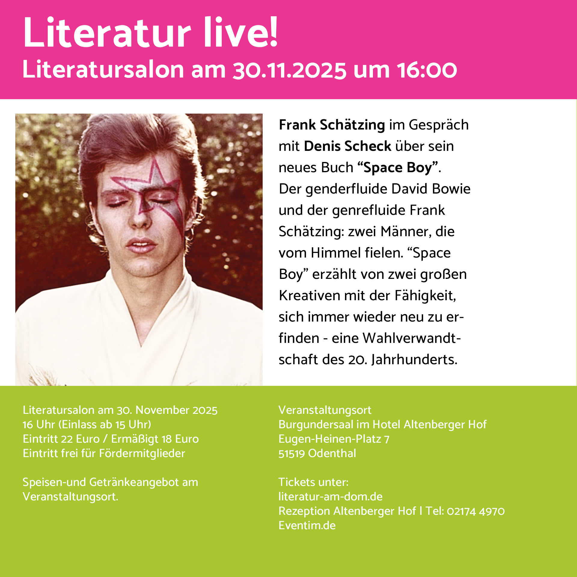 Die Veranstaltungen finden im Kräutergarten des Küchenhofs (Carl-Mosterts-Straße 1, 51519 Odenthal) statt. Weitere Karten nebenan an der Abendkasse, Rezeption Hotel Altenberger Hof, gegenüber dem Altenberger Dom.